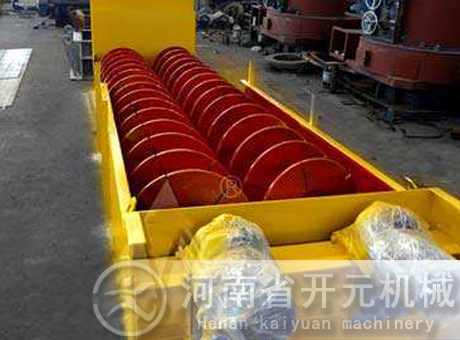 三、研磨后的礦石細料進入螺旋分級機,螺旋分級機借助固體顆粒的比重不同、而在液體中沉淀的速度不同的原理,對礦石混合物進行洗凈和分級。